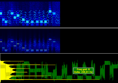 this interesting signal (supposed to be used by "Russian Intelligence") has been heard on 13497.0 KHz and 15812.0 KHz USB on 30 October (from 1300z to 1330z) and on 15845.0 KHz USB on 18 March (from 1300z to 1320z).
