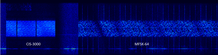 MFSK-64 is likely a Russian Intel parallel tones system as well as other MFSK and CIS-3000 could be employed as a sort of selcall.