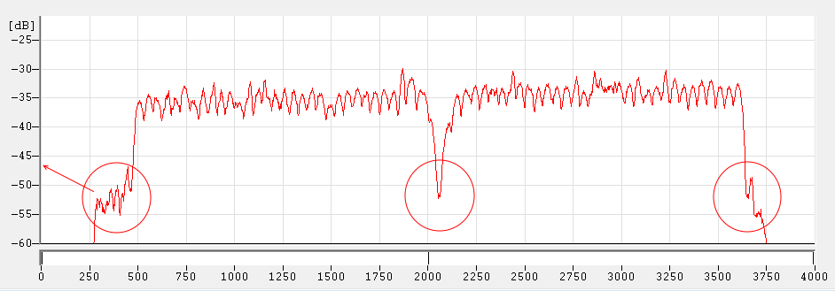 The 64-tone solution can be easily seen by counting the tones over the -40dB threshold in the upper and lower part of the signal plotted in the FFT spectrum /Fig. 4).